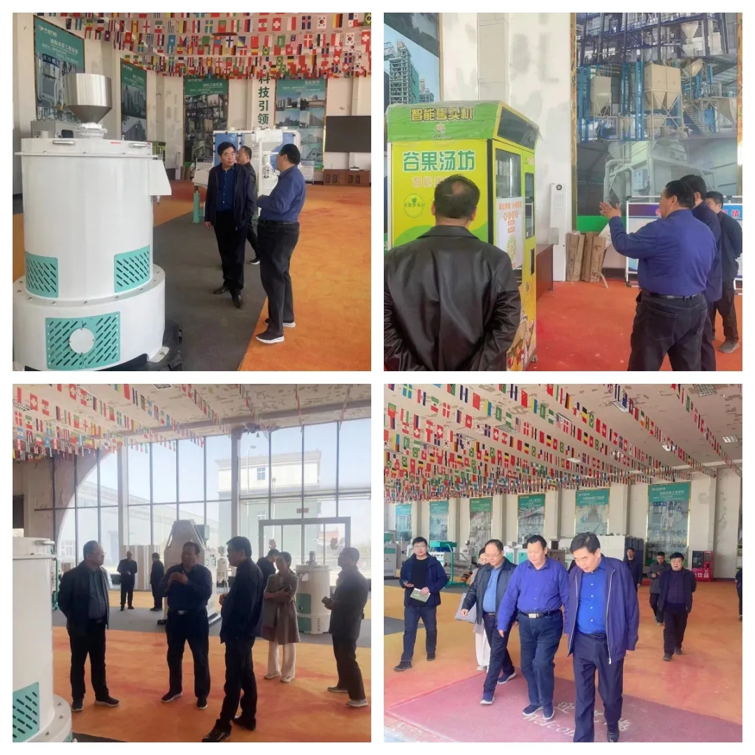 秦局長(zhǎng)一行現(xiàn)場(chǎng)查看了生產(chǎn)車(chē)間、研發(fā)中心、產(chǎn)品展廳等情況,對(duì)華豫萬(wàn)通的現(xiàn)有發(fā)展和未來(lái)規(guī)劃表示肯定。同時(shí)指出,當(dāng)前糧食加工行業(yè)需要“科技創(chuàng)新+先進(jìn)制造”,著力推動(dòng)糧食加工安全和產(chǎn)業(yè)化發(fā)展,希望華豫萬(wàn)通充分發(fā)揮行業(yè)引領(lǐng)作用,爭(zhēng)當(dāng)創(chuàng)新驅(qū)動(dòng)發(fā)展排頭兵,聚力糧食加工機(jī)械智能化、集成化、綠色化發(fā)展,為行業(yè)高質(zhì)量發(fā)展作出更大貢獻(xiàn)。