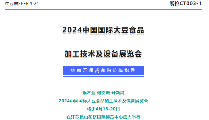 【展會預(yù)告】華豫萬通邀您共赴2024中國國際大豆食品加工技術(shù)及設(shè)備展覽會