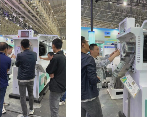 華豫萬通此次展出了HRP40智能柔性大米搓光機、YHT700智能大豆脫皮破瓣機、HTY智能葵花籽脫殼機、冰冷式纖維微粉機等創(chuàng)新產品亮相展會,并圍繞糧機創(chuàng)新技術和數(shù)智化工程等新質生產力與看展客商探討交流,以技術實力促進糧食加工企業(yè)轉型升級。