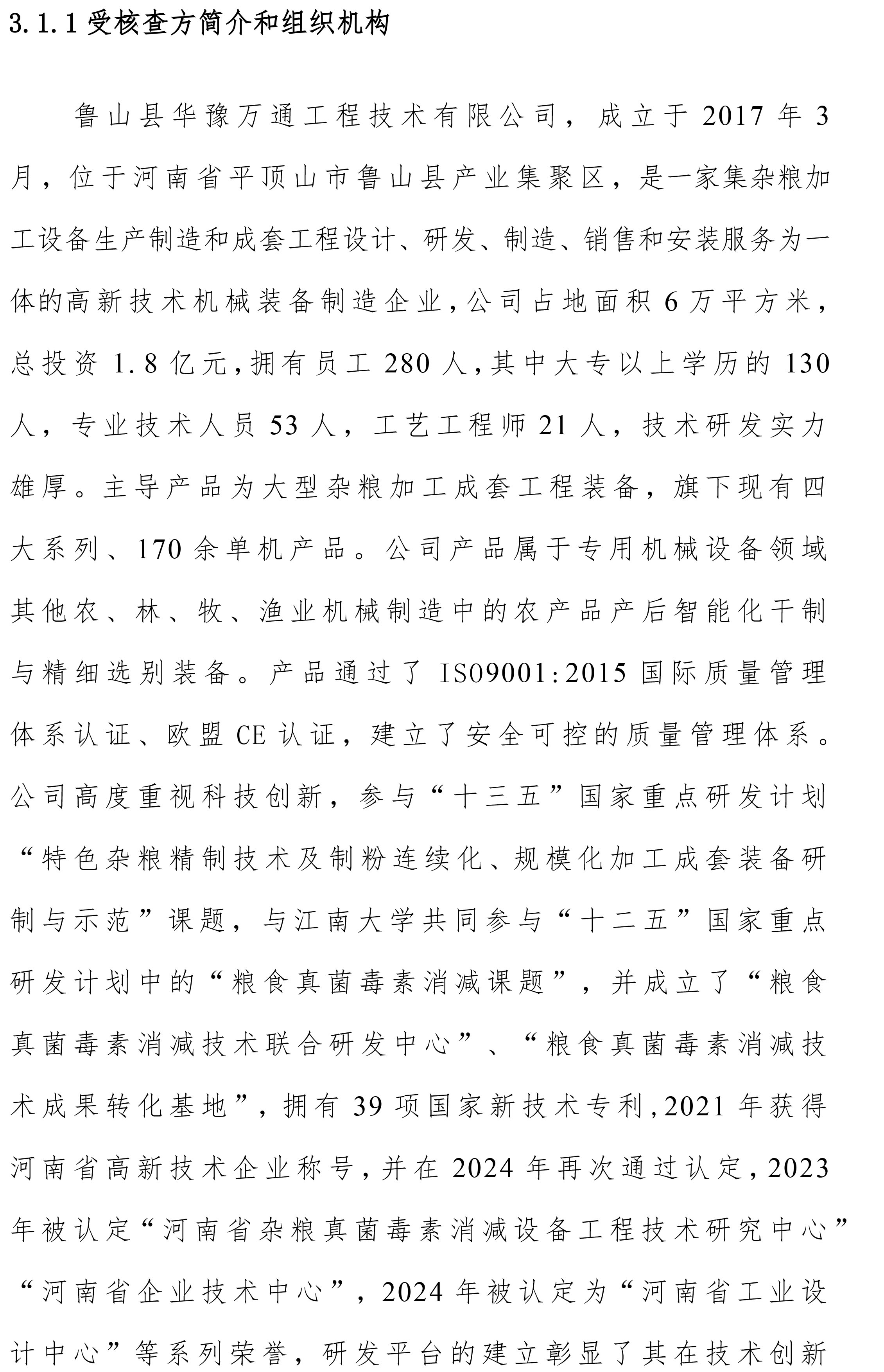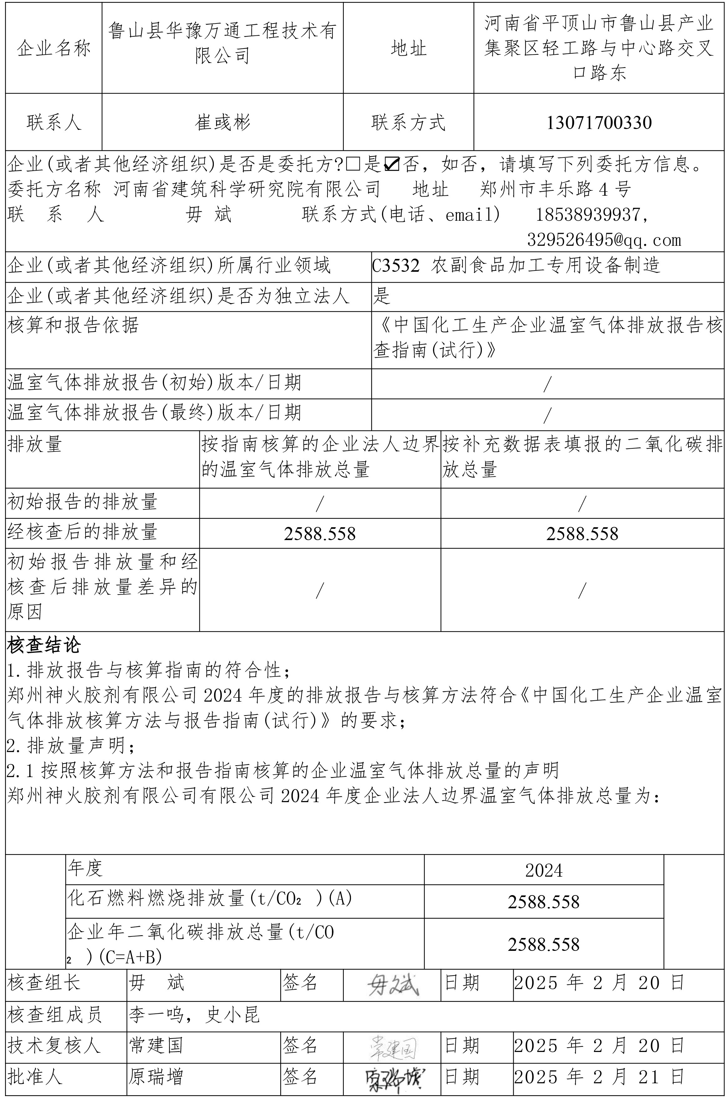 溫室氣體排放核查報告_魯山縣華豫萬通工程技術(shù)有限公司
